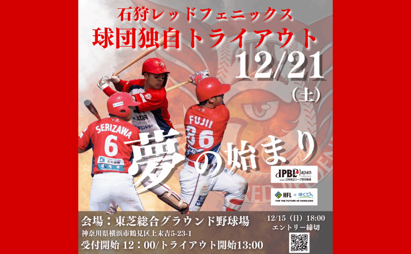 12月21日(土)に東芝総合グラウンド野球場にて、球団独自のトライアウトを開催いたします。