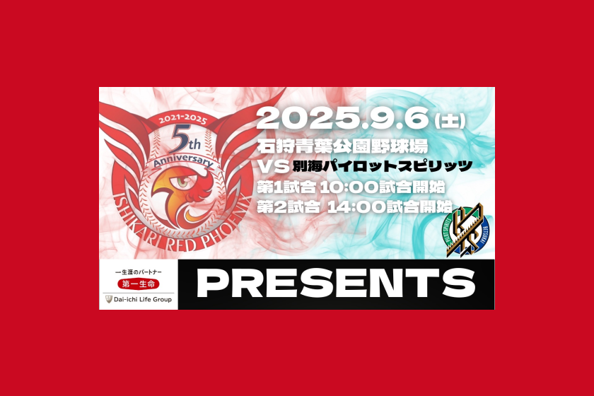 9月6日(土)のホームゲームは「第一生命」プレゼンツ、石狩青葉公園野球場でダブルヘッダー!